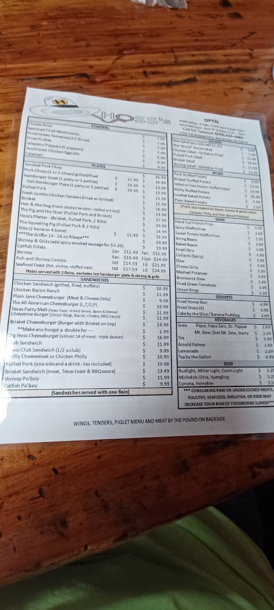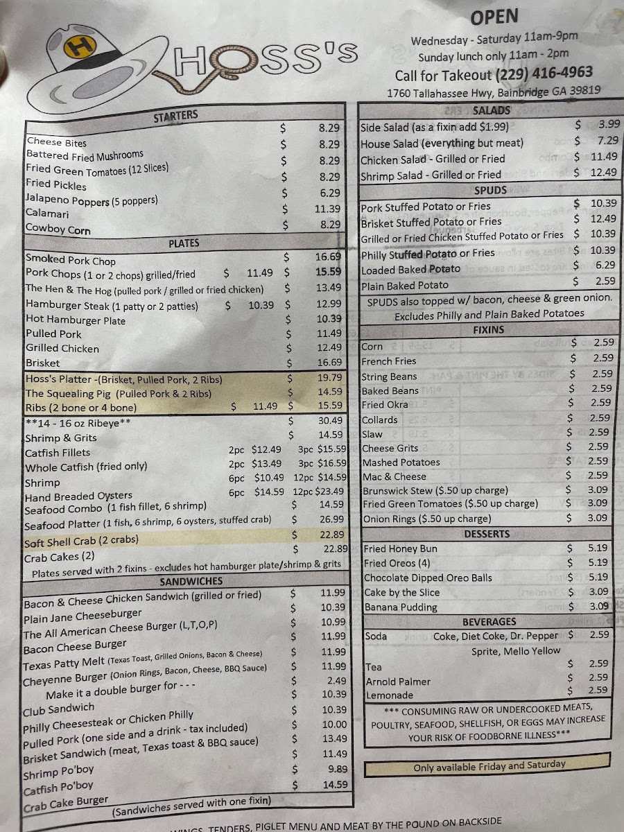 Welcome to Hoss’s, a hidden gem located at 1760 Tallahassee Hwy in Bainbridge, GA. This inviting eatery embraces the charm of country cooking with a menu that celebrates hearty, authentic flavors.